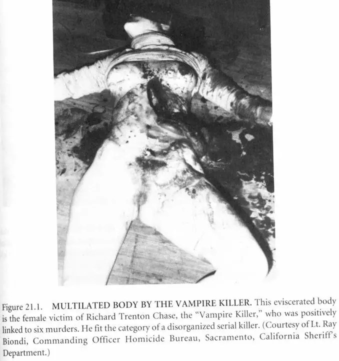 Οι σκηνές των εγκλημάτων του περιγράφηκαν από έμπειρους ερευνητές της αστυνομίας του Σακραμέντο ως οι «πιο γκροτέσκες σφαγές» που είχαν αντικρίσει σε δεκαετίες υπηρεσίας. Ο Chase δεν ήταν απλώς ένας δολοφόνος· ήταν ένας κανίβαλος και νεκρόφιλος που ακρωτηρίαζε τα σώματα των θυμάτων του σε μια κατάσταση πλήρους πνευματικής αποσύνθεσης.